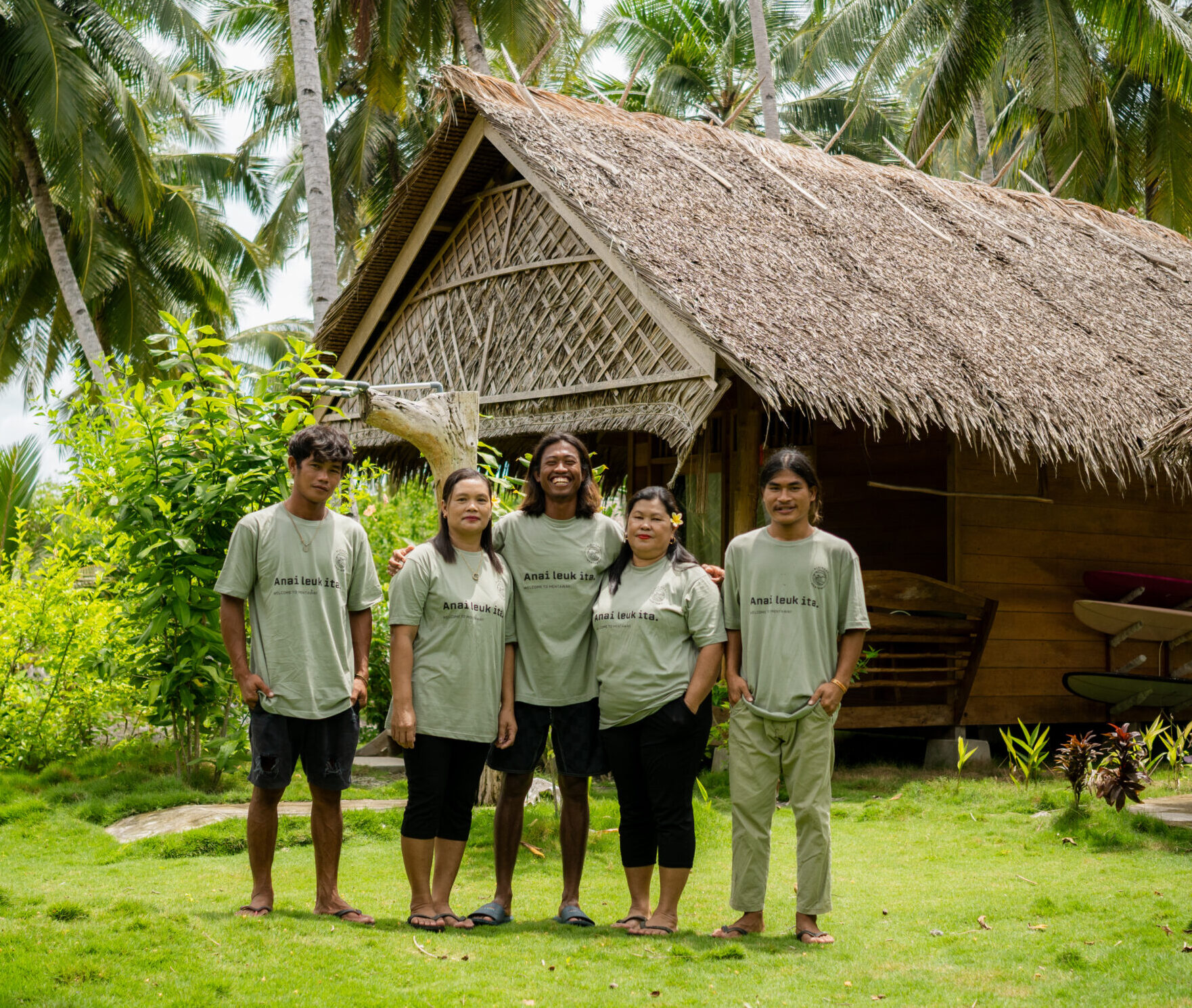 ALEIKOAT (Mentawaian, “Alei Koat“) means “friend of the sea”. We chose this name to respect Bian’s roots and the passion of the Mentawai culture. All our employees are like family and we hope you will feel the same!